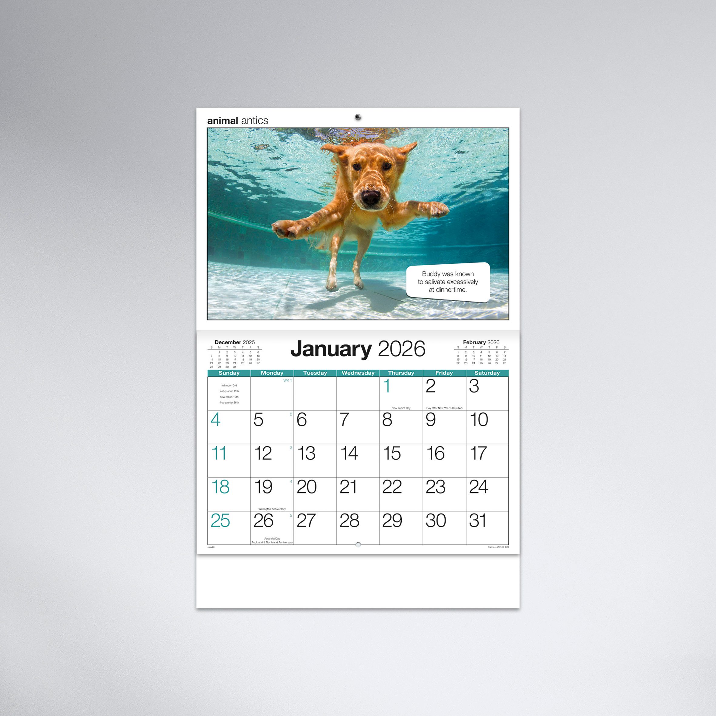 The combination of endearing animal photos and humour is always a winner, especially when it’s on a useful calendar!